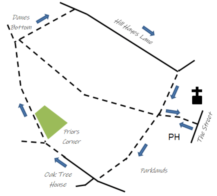 Walk 1 – Parsons Walk, Danes Bottom and Hill Hayes Lane – 1½ miles