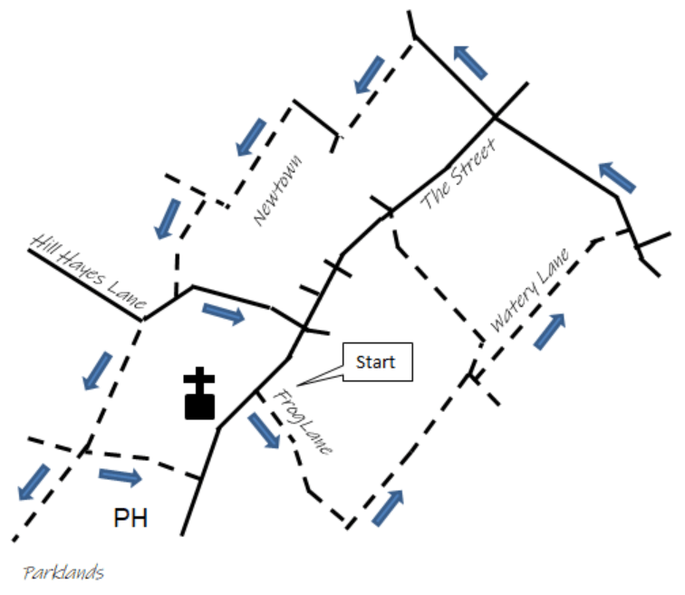 - Here you can either follow the lane back to The Street, or cross it and go on to enter The Street via Parsons Walk or, if you live in Parklands, go the extra ¼ mile, emerging into Will Lane at the end of that estate near Gardners Farm.
